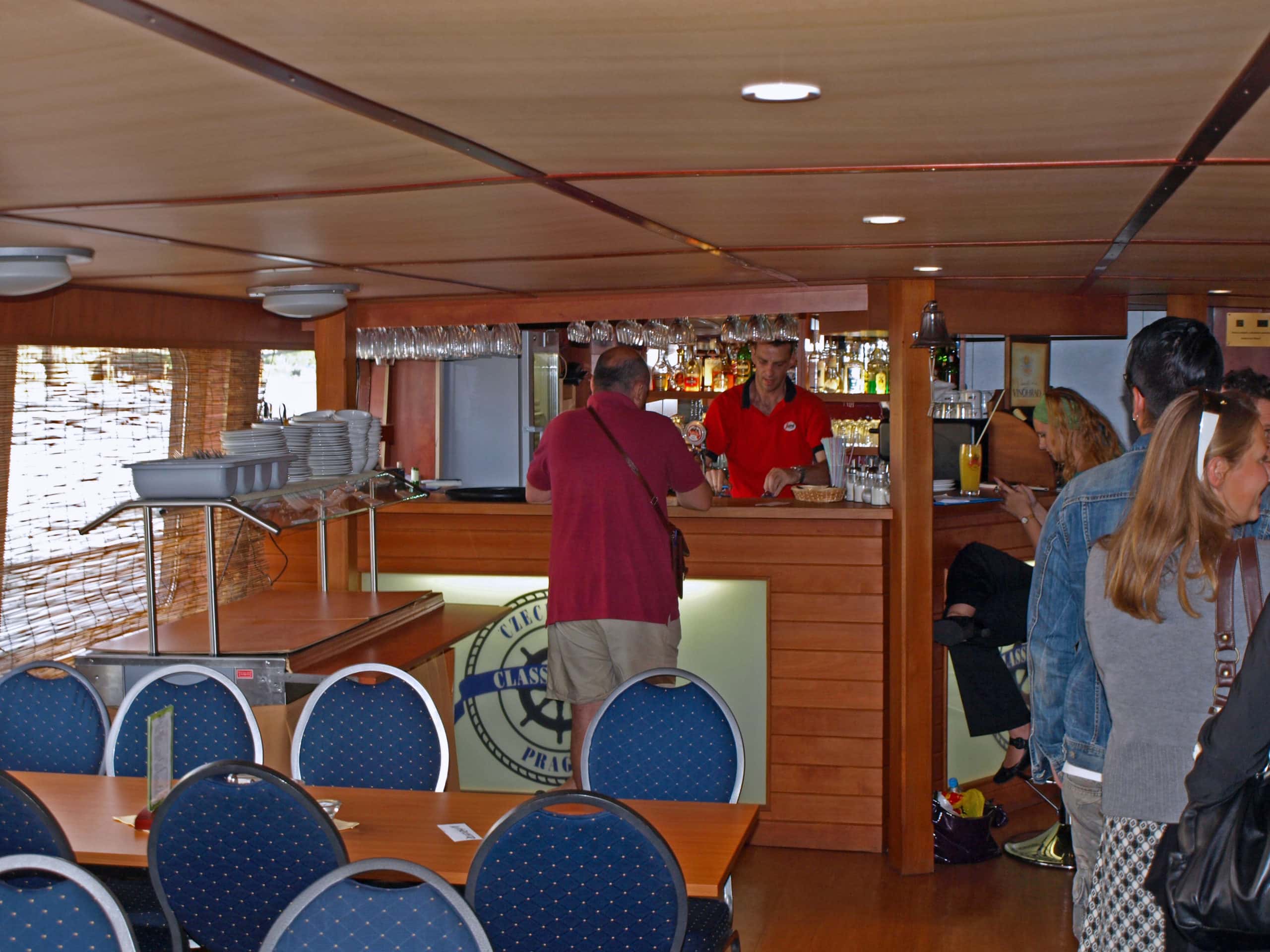При входе на судно вас встретит наша хозяйка, которая будет заботиться о вас во время круиза. Хостес не заменяет туристического гида; тем не менее, она предоставит вам основную информацию о программе круиза и поможет вам, если у вас возникнут вопросы и проблемы. Кроме того, за вами будут присматривать профессиональные бармены и обслуживающий персонал. Круиз с ужином очень популярен и приятен и предлагает хорошее соотношение цены и качества. Если вы ищете круиз класса люкс с ужином, чтобы отпраздновать важный юбилей, день рождения и т.д., пожалуйста, имейте в виду, что это не круизы класса люкс, как вы можете знать, например, из Парижа. Несмотря на это, мы верим, что вам понравится круиз по вечерней Праге и что это будет уникальным опытом во время вашего визита.